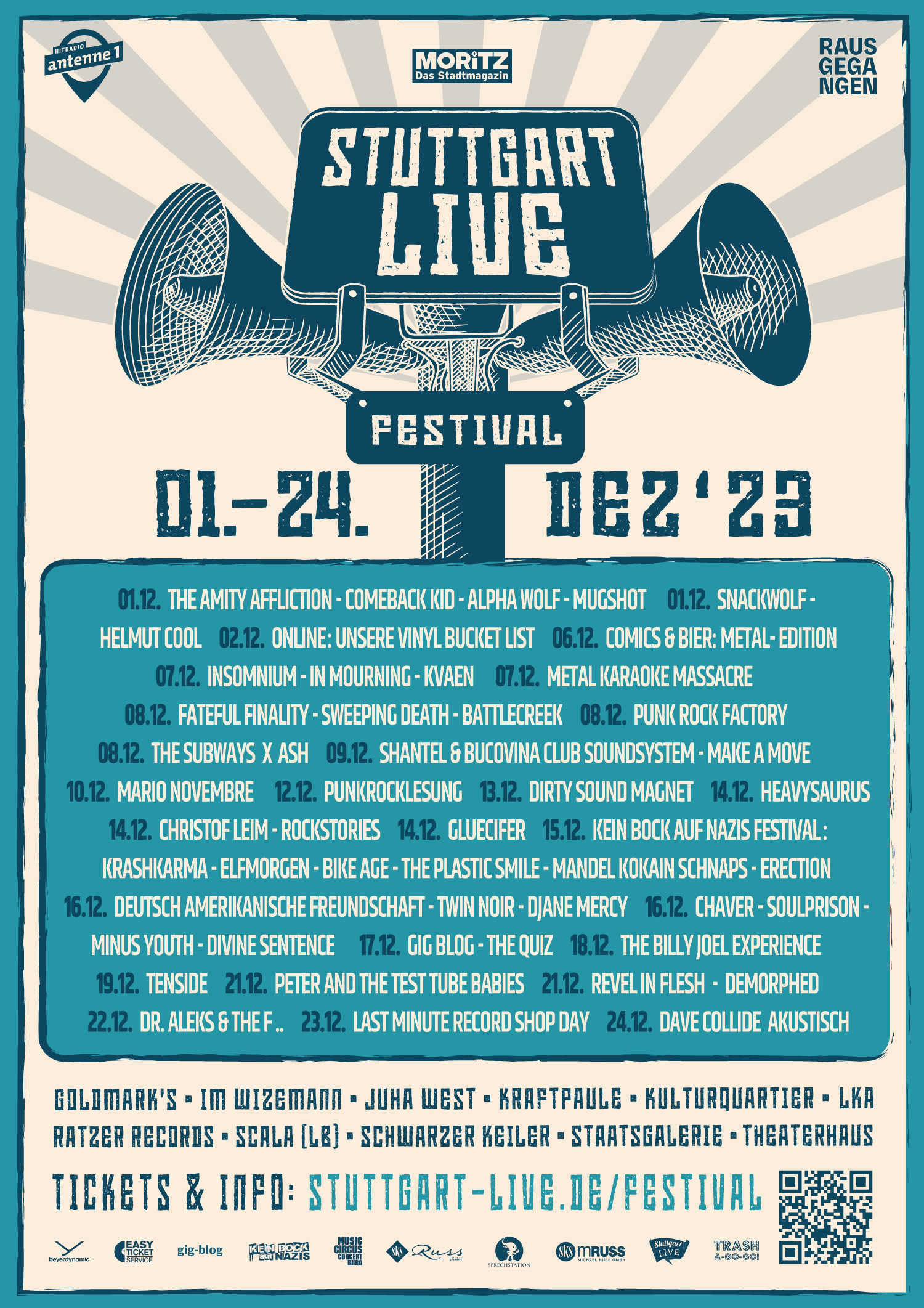 Unangepasst, laut, abseits vom Mainstream oder mittendrin – aber immer mit 100% Herzblut organisiert: Das ist unser Clubfestival im Dezember, das dieses Jahr in seine dritte Runde geht. Wir möchten alle musikbegeisterten Menschen aus der Region einladen, Neues zu entdecken – in Räumen, die in Stuttgart unentbehrlich für Club-Konzerte für Bands aus der Region wie der ganzen Welt sind.